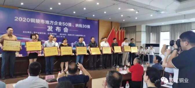 2021年7月6日下午,由市企業(yè)聯(lián)合會(huì)、市經(jīng)信局、市稅務(wù)局聯(lián)合舉辦的2020年度銅陵市“地方企業(yè)50強(qiáng)”“納稅30強(qiáng)”發(fā)布會(huì)在銅化集團(tuán)會(huì)議室隆重召開(kāi)。副市長(zhǎng)王綱根,市老領(lǐng)導(dǎo)、市“四會(huì)”創(chuàng)始會(huì)長(zhǎng)唐世定,市委宣傳部副部長(zhǎng)章祎,市中小企業(yè)局局長(zhǎng)朱永平,市稅務(wù)局黨委委員、副局長(zhǎng)李軍等領(lǐng)導(dǎo)出席會(huì)議。發(fā)布會(huì)上,我司被授予“2020年度銅陵市地方企業(yè)50強(qiáng)”的榮譽(yù)稱號(hào)!